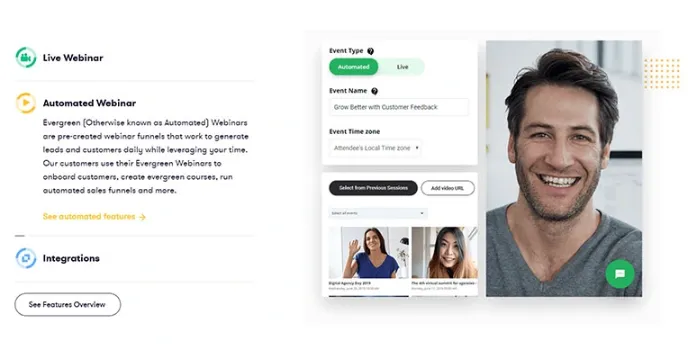 EasyWebinar offers automated webinar software and automated webinar funnels that work to generate leads and consumers daily. EasyWebinar consumers use their Evergreen presentation to onboard customers, create courses, run computerized sales funnels, and more. Reach more prominent spectators by streaming in your participant's local timezone.