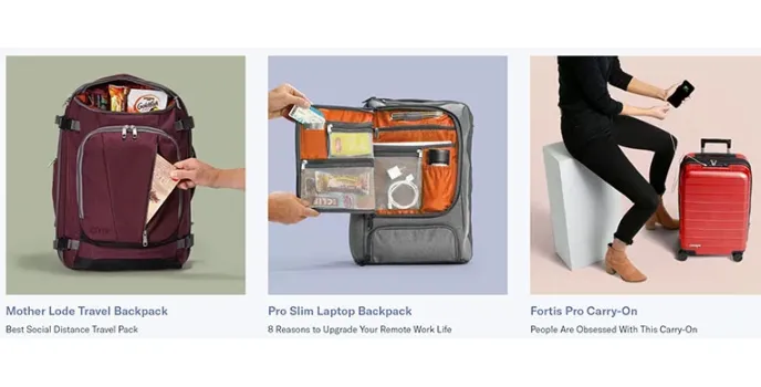 It also has travel accessories that help you organize your things better, like travel cubes, small laundry bags, passport covers, cooler bags, etc. For each category, there are subcategories where products are sorted according to their durability and popularity.