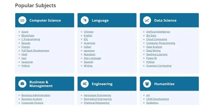 - Online courses subjects like science, engineering, math