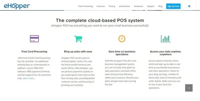 This Ehopper POS software provides 100 free credit card processing with 0 percent card fees. There are no monthly fees or commitments attached to this system that has round-the-clock support.