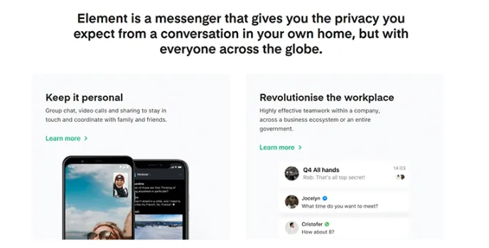 Above all, Element's developers have prioritized protection and decentralization: end-to-end encryption ensures that only approved users can see your messages, and the option of servers (including home servers) gives you more flexibility and ownership over your data.