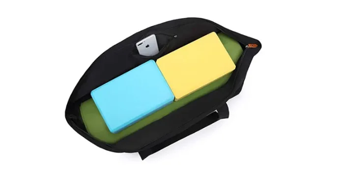 Compared to Yogiii and Fremous mat bags. it is relatively cheaper, and it provides a range of colorful, young, and energetic design models. This amazing and affordable yoga mat has the latest full zip features, which is easier to put your mat and keep it clean and organized. It holds up to ½ inch thick or more and 27-inch wide mats. It is provided with a large front pocket, which is ideal for placing personal belongings such as mobile phones, wallets, and other essential items safe and secure.