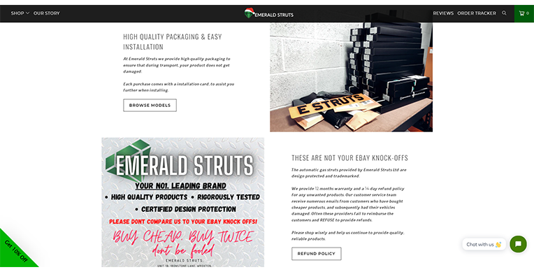 If you are looking for modified vehicle struts that can be easily installed in 10 minutes and allow the boot to open smoothly, shop at Emerald Struts. They offer struts that are hand assembled, packaged, and delivered to you wherever you are, and they aim to ship all products within 24 hours. You can get a 12 months warranty on all products which are damaged and faulty, and they do not like leaving you with faulty products. They offer strong, reliable packing to ensure your products are delivered safely during transport. The struts they offer are finished with a smooth design, easy to install, and affordable.