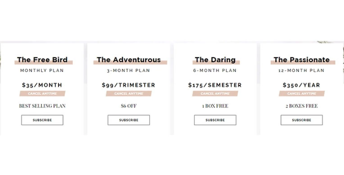Many fields in fashion marketing use this subscription idea that helps them in promoting their brand as well as in receiving customerβs satisfaction. Subscription boxes are becoming popular nowadays. Subscribing plans help in delivering and receiving of the packages every month at the given address. Emma & Chloe also provide gold and silver chains with pendants.