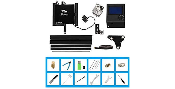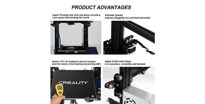 This ender 3D printer has 1*Creality Ender 3. It comes with a 1*Tempered Glass Plate, making models easier removed. It also makes the hotbed flatter and five nozzles. It is convenient to solve the problem of hotbed warping as in the Ender 3D printer brand. It comes at cheap 3D printers prices with good service. Its MK - 8 extruders significantly reduce plugging risk and bad extrusion. The creality ender 3x with the POM wheel makes it move noiselessly, smoothly, and durable. Its one-piece structure provides a large printing size.