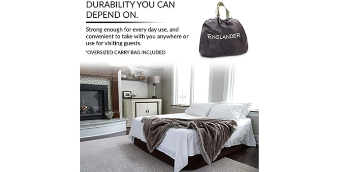 Englander mattress comes with welded seams that are extremely strong. This inflatable bed is quite lightweight and even folds up to a convenient size for traveling purposes. It inflates within 90 seconds and makes for a stable and protected sleep.
