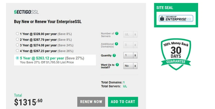 Many companies find problems managing multiple domains. Enterprise presents another certificate for them. It is a single certificate but can securely order various parts. This unique SSL certificate is less- expensive and well-organized than other websites like Namecheap Positive SSL and Sectigo SSL, by which you can secure multiple subdomains.