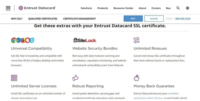 Due to universal compatibility with multiple search engines, its SSL certificates secure various domains. Besides, Entrust SSL Certificate is one of the best websites to buy SSL certificates, as it improves the conversion rates and SEO rankings and avoids browser error messages.