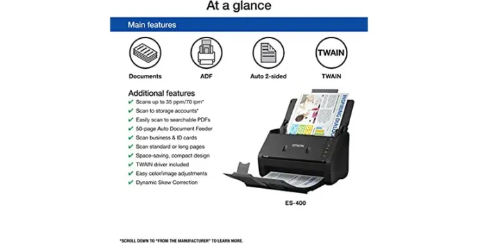 Epson WorkForce ES-400 Color Scanner - Unique Single-Step Technology To Scan Both Sides