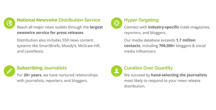 E-releases is one of the best online press release distribution services in the market for small businesses. It has an exclusive database for subscribing to journalists, a proven track record, and search engine optimization.