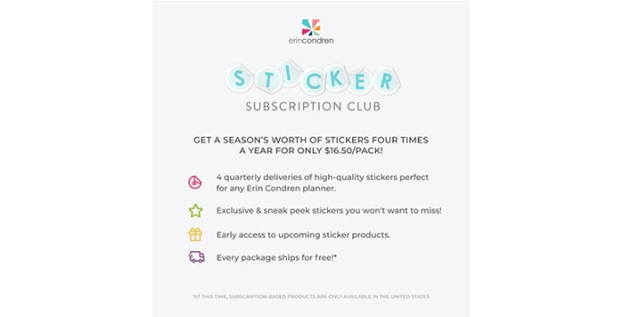 You should sign up for the Erin Condren Sticker Club right on their pages! Only press the "Sticker Club" button in the stickers tab.