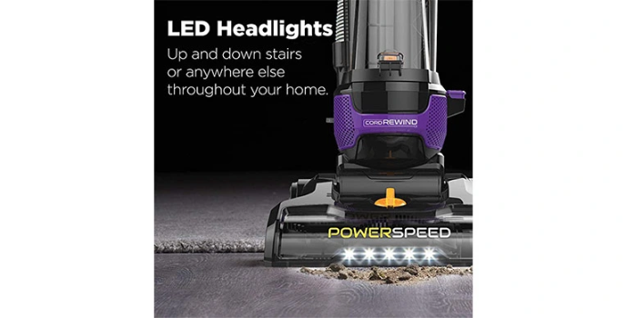 It also includes LED headlights for viewing any hidden dust and a single tap automatic cord rewind function for easy and simple rewinding of the procedure.