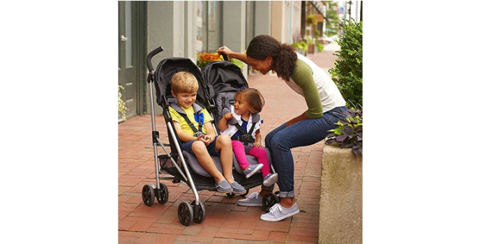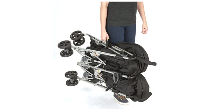 Say goodbye to the traditional strollers that have bent to fold up the strollers, and this advanced Evenflo double baby stroller has a simple push button to fold up the stroller. Evenflo double twin strollers make it easy to take both babies to the rides. Its compact and narrow design stroller offers hassle-free solutions for running errands.It is also incorporated with an oversized canopy with cup holders and a generous storage basket with unique and one-handed folds. It provides easy to push and offers a smooth and comfortable ride to the children.