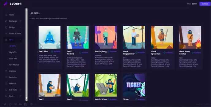 EVOdefi believes in creating high technology products, including the NFT games, which have great features to learn and know about in-depth. EVOdefi bridge includes token bridge, NFT bridge, farms and pools, NFT market, loot box with rewards, and buying and selling tokens.