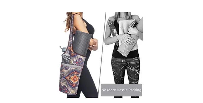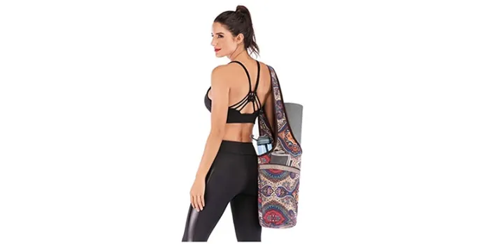 Are you looking for something trendy and comfortable as well to carry out the yoga mats? Then this would be the best bag for carrying accessories and yoga equipment. This attractive yoga mat bag has trendy appearance. It is very large and comfortable to carry off in different sizes and perfect for both men and women. This product features a two-pocket design, which helps to keep the water bottles, wallets, and sunglasses. It is made with durable materials and has wider openings, and is available in different colors and sizes.