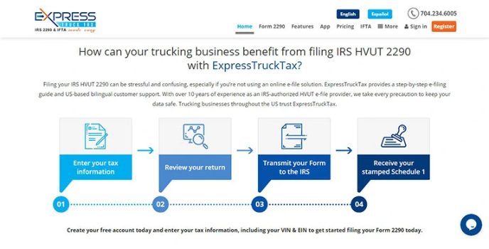 Tax filing was never made simpler. The ExpressTruckTax is a great online e-filing solution that provides a step-by-step e-filing guide and generous bilingual customer support and business services. This company comes with over ten years of experience and helps ensure that your data is always safe and protected.