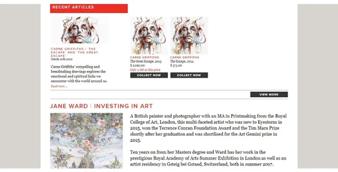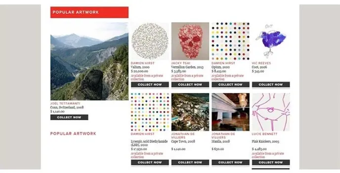 The art presented on Eyestorm is extraordinary, but it does come at a price. You need to have at least 700 dollars to spend before you decide to browse through the work. The website follows a theme of red and white throughout, consistently and also informs about the latest trends in the market.