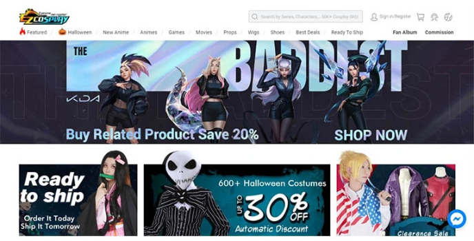 EZCosplay is a well-known website to buy halloween costumes with high quality and designs. It provides you with cartoon character's accessories as well. They have both online and offline payment methods so that you can choose according to your comfort and availability. They provide you with food and drink crafted costumes in the most affordable price range. They provide you with fast and quick delivery.