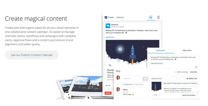 Falcon's social media management tool is helpful to the people to advertise content on social media platforms that are similar to HootSuite and Socioboard. In addition, those can collaborate with teams and monitor social media performance.