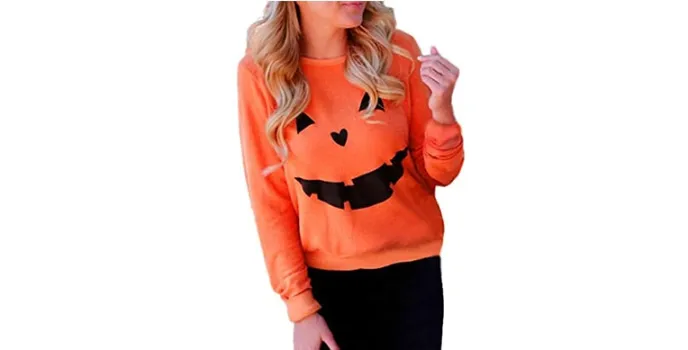 Fayaleq Sweaters contain pumpkin face long sleeve Halloween sweatshirts for women. These sweaters offer a soft cotton blend and comfortable cloth.