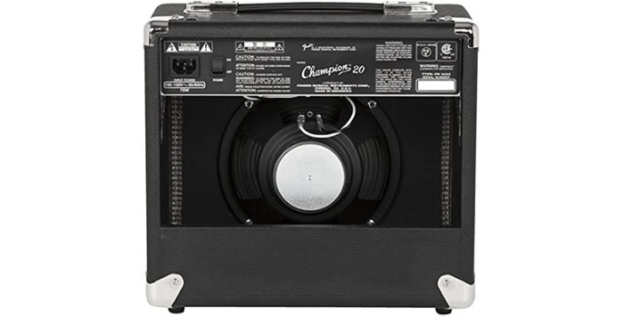 The Fender champion 20 comes with an extra cabinet at the back to store different cables or other small accessories with the open-back cabinet.