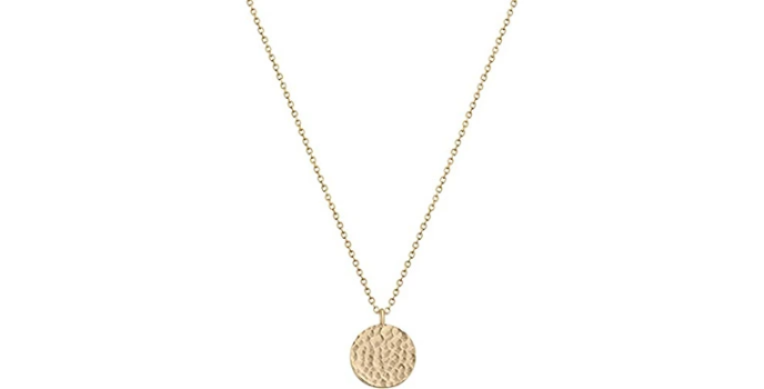 The Fetters jewelry is nickel-free and lead-free and is also completely hypoallergenic. It can safely be rested on your neck and comes with a dainty but strong chain. Moreover, it includes delicate handmade hammered coin charm pendants as well.
