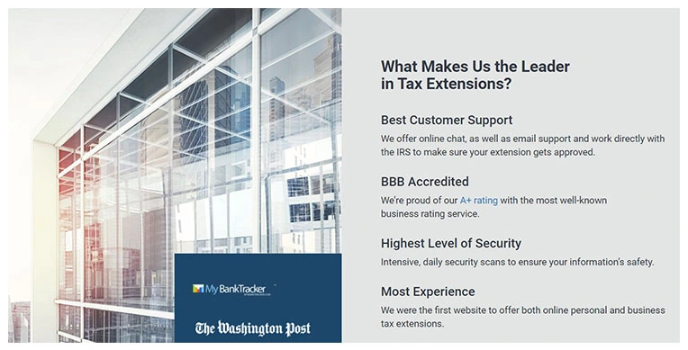 This platform is quite secured, similar to In and Out Tax Service. This tax filing software makes your tax payment by debiting it directly from your checking or savings account. Through this portal, you get the best support in the tax extension industry as this company focuses on providing the best service to all its clients.