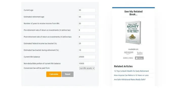 - IRA calculator compares all tax consequences