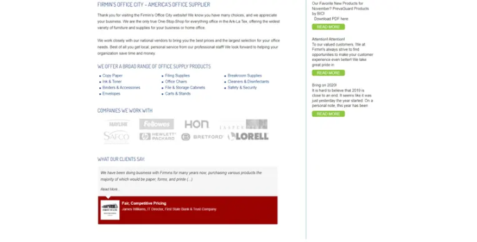 At Firmin's, they offer a broad range of business supply products such as office supplies, office furniture, office equipment, printing & graphics design, janitorial & break room, security & safety, and promotional products.