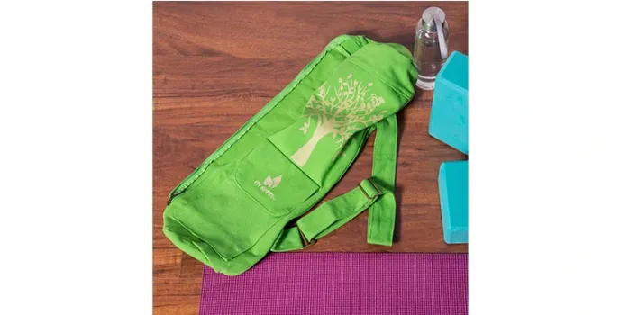 This model is an extra-long carrier with an adjustable shoulder strap resistant to tears and can withstand rough usage. It is made of pure cotton, canvas material, which is wear and tear-resistant to serve the users for many years. The front is decorated with beautiful embroidery patterns under which there are two medium-size pockets to keep small accessories like mobile, keys, gym membership cards, and more. One can say that the capacity of this bag is commendable as it can hold mats ranging from 3mm to 6mm thickness.