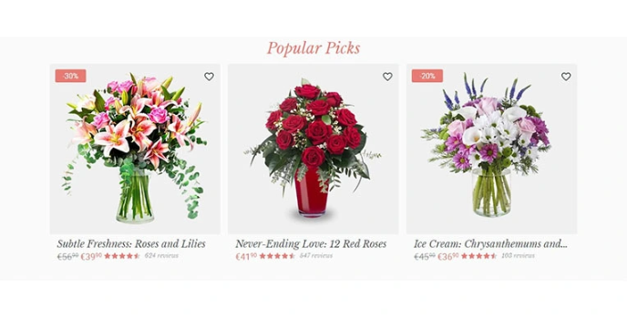 FloraQueen will send top-quality flowers to clients in over 100 nations worldwide, regardless of the day or delivery time. To ensure that, FloraQueen meets customer needs and has established a distinctive business model. Based on the date of delivery or destination, FloraQueen integrates two ways of sending flowers: bouquets organized by an in-house florist team of local florists worldwide.