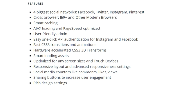 Flow-Flow is different from all other social media plugins and it offers a unique feature called Lightbox Galleries. It helps to display the pictures in a lightbox with attractive animations along with smart media preloading.