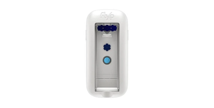 Flyp nebulizer for COPD patients provides the users with the option to pulse clean the product. For low power consumption, the product exhibits blue on and off the light. The Hypersonic technology employed in manufacturing the product is responsible for providing the quiet nature. The design of the product provides the users with increased seal and comfort.
