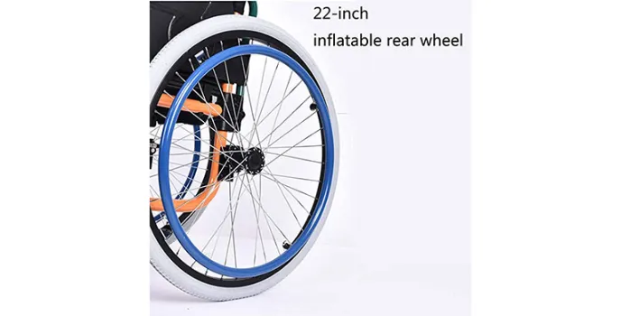 It has high strength and corrosion resistance with a cross support structure, double support design, and a stable overall frame. Itβs also worn-resistant with frame painting treatment. The 22β inflatable rear wheel has a strong obstacle ability which makes it suitable for uneven roads. The friction is greater, and implementation is more labor-saving. The backrest can be folded over and hence conveniently stored. It is rated among the best ergonomic wheelchairs in the market and is a perfect fit for children.