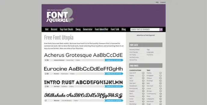Font Squirrel's hard to choose these free typefaces and fonts, ensuring they are available in an easy-to-use format. It includes Designs and fonts from various websites and types, enabling users to choose from a wide range of customizable fonts and templates.