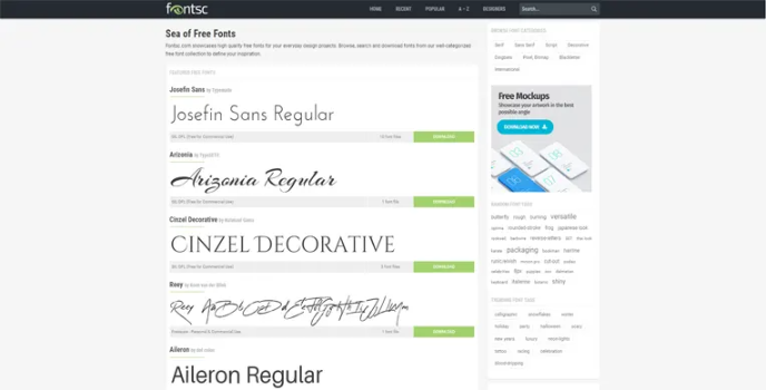 Fontsc.com is a font website that provides high-quality free fonts that you can use for your everyday design projects. You can browse through the design library, search and identify the required design and download the required font. These fonts can help you define the hierarchy of your content with its font size and color.