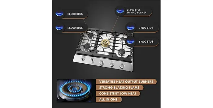 For getting the best cooktop, there are various considerations to take care of, such as the size and functionality of the machine. The Fotile Stainless Steel Gas Cooktop is an excellent cooktop for cooking in various and versatile styles with a high output tri-ring burner.