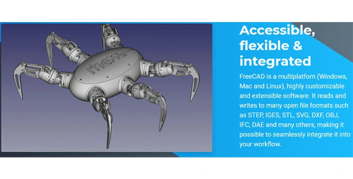 FreeCAD has a fully-fledged Qt-based graphical user interface with an open inventor 3D viewer that allows for fast 3D scene rendering and a scene visual display that can use very quickly. It is possible to import FreeCAD into any application that can run scripts from Python. The FreeCAD interface is not available, but every geometry tool is accessible, as is used in the command line mode.