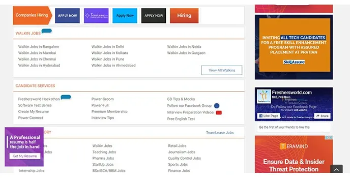 Freshersworld Job Portal is a job portal for startups that helps upcoming job makers to create a platform for their self-builds. It gives you access to their special training sessions which are given by some of the professionals.