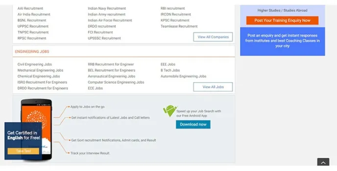 Freshersworld Job Portal (FJP) provides you preparation modules for the interview of aspirants. It enhances the knowledge of aspirants by providing them with the aptitude and general knowledge questions. It gives you access to their test modules and gives access to computer training sessions. It is the easiest form for job searching as it works on category listing. This job portal is the organized job portal as it lists post postings according to the specified sectors.