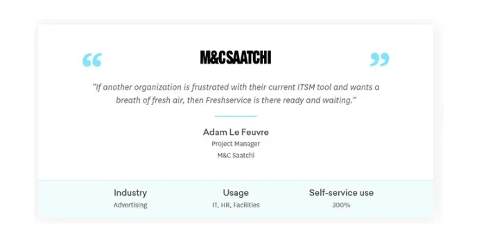 The ITSM solution currently provides services to more than forty thousand SMB and medium-sized companies worldwide. It is based on a cloud-based service desk and IT service management (ITSM). Freshservice CRM software has been developed using best practices to make IT businesses concentrate on the essential items - excellent service and client loyalty. These customers select Freshservice based on accessibility, the pace of set up, customer service, and cost-effectiveness and endorse their service desks and ITSM specifications.