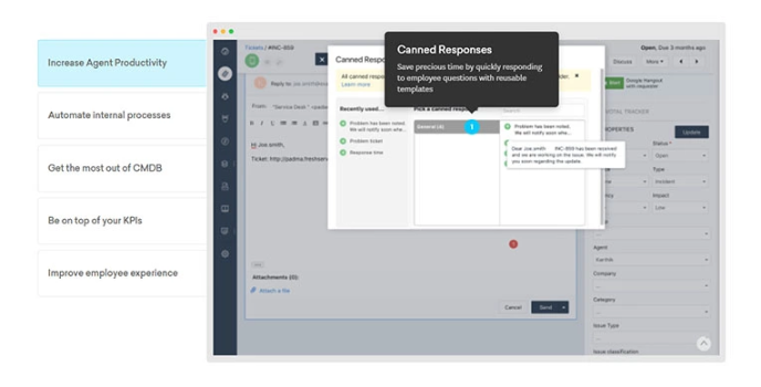 FreshService has handy yet straightforward business functions that increase agent productivity, automate the internal system, get the most out of CMDB, and rank amongst Top KPIs.