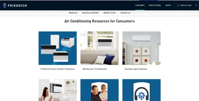 For energy-efficient and innovative home features, Friedrich offers various products such as ductless air conditioners, through-the-wall air conditioners, portable air conditioners, dehumidifiers, etc.