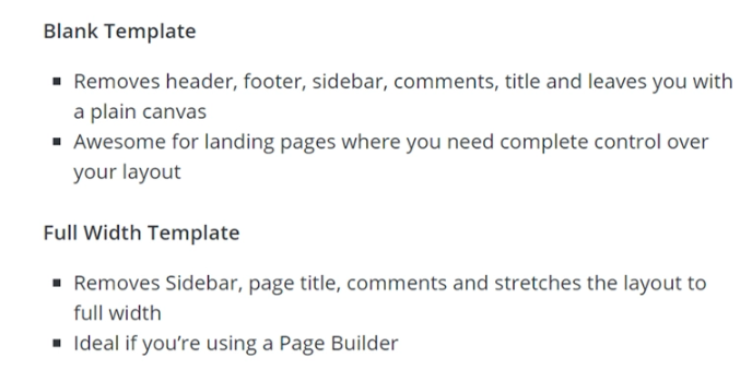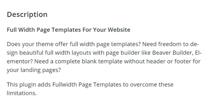 You can always find the themes in complete format with other popular WordPress plugins such as Starter Templates and Pods Beaver Themer Addon as they provide similar services like the Full Width Templates.