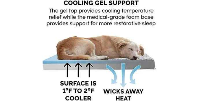 The Furhaven Orthopedic bed comes with a medical-grade foam base mat for pets dealing with sleep disorders and is the perfect gel with cooling gel properties. It comes in a traditional mattress design that gives your pets plenty of space to sleep in. Moreover, it is available in multiple colors and styles and comes with an eye-catching swirl pattern with micro suede-covered sides. It is similar to the Petfusion and the Coolaroo pet bed.