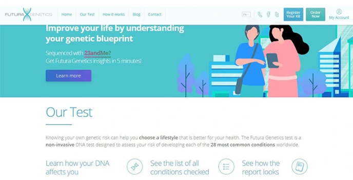 Futura Genetics is the best DNA test kit that will not only test for 28 genetic risks that you may be at but also tests 103 SNP's (Single Nucleotide Polymorphisms).