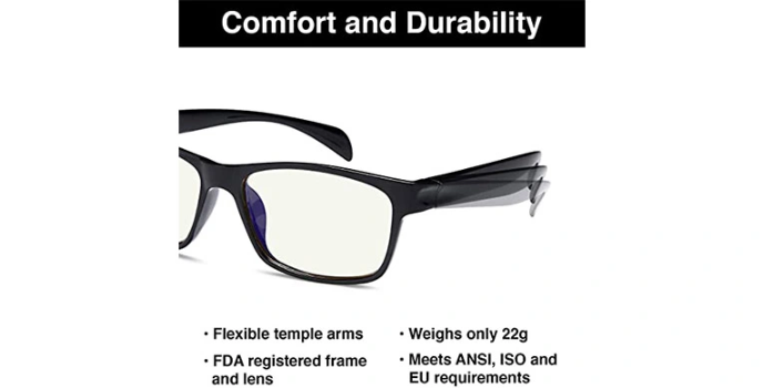 This product is designed with patented lenses from the brand itself for a clear vision and undisturbed eyesight. The speciality of these lenses is that they are anti-glare, non-polarized, and anti-reflective with a bit of tint coating to block the blue light from the LED screens effectively.