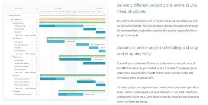 Gantt Pro is a collaboration-ready team solution. It helps users attach files to the project plans and then post comments and mentions for notifying the team members through notifications and emails. Gantt Pro is an easy-to-use, fully-featured project management tool that comes with the best practices and provides the opportunity for attaining utmost success. The projects are easily scalable and are quite cost-effective. It also comes with additional features of resource management, time tracking, customization, and overall integration.