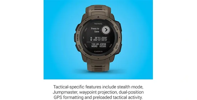 The Garmin Instinct Tactical smartwatches are Standalone Smartwatches having high resistance for water, heat, and shock. It has a compatible night vision display and bright sunlight mode and includes multi-features like stealth mode, Jumpmaster, dual-position GPS formatting, waypoint projection, and more.