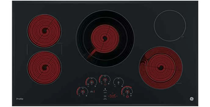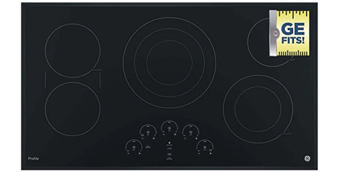 The GE PP9036DJBB is a 36โ electric cooktop with a GE profile of 36 inches.